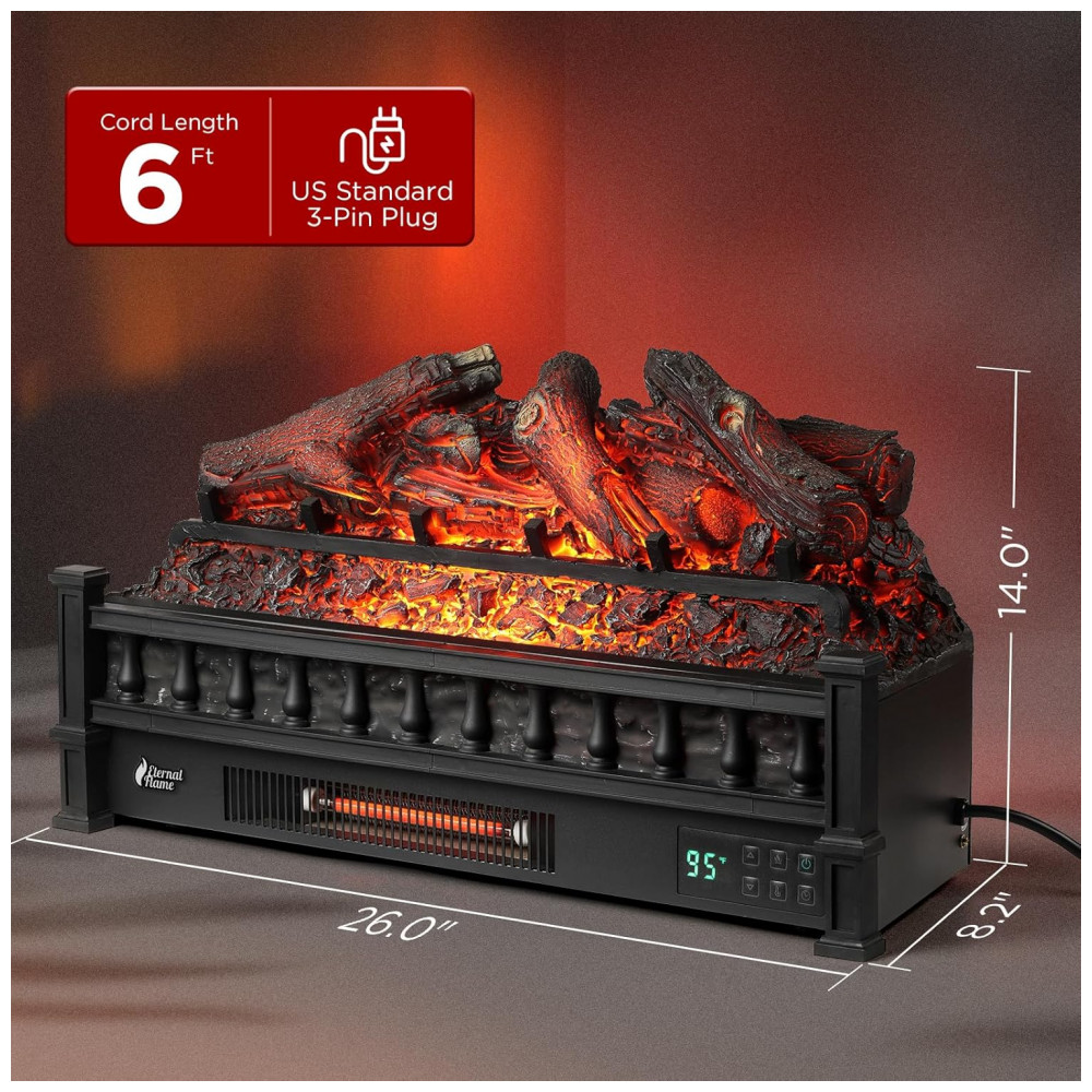 A lareira elétrica TURBRO Eternal Flame EF26 LG de 26 polegadas 66 cm utiliza tecnologia infravermelha de quartzo para aquecimento zonal eficiente de até 23 m .