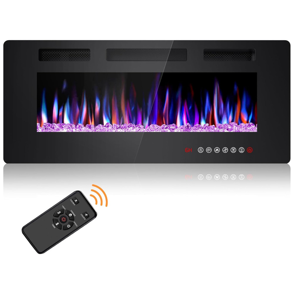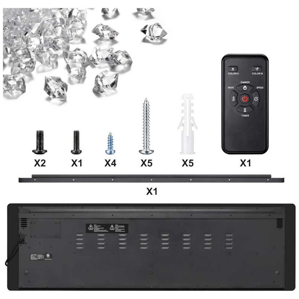 Lareira Elétrica Joy Pebble de 107 cm, Embutida ou de Parede, com Aquecedor 750 1500W, LED Touch, Controle Remoto, Timer, Chamas Ajustáveis em Cor