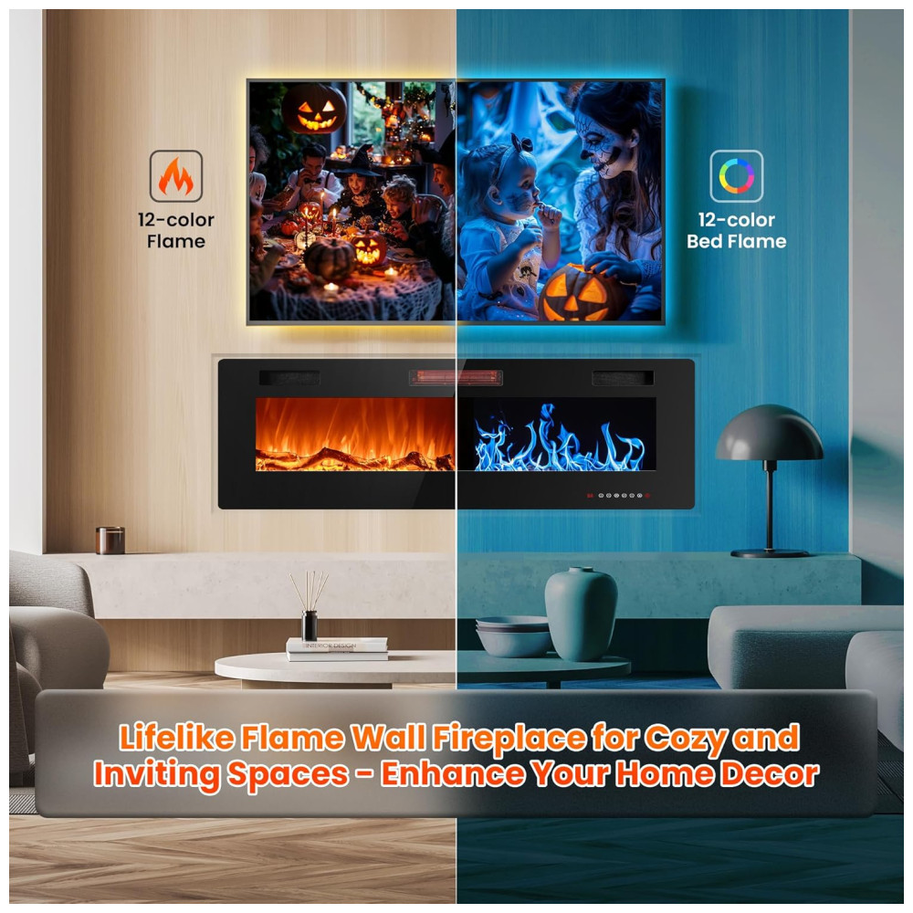 O efeito de chama é realista e possui 12 modos de cor de leito de chama LED, 5 modos de velocidade de chama e 5 níveis de brilho de chama.