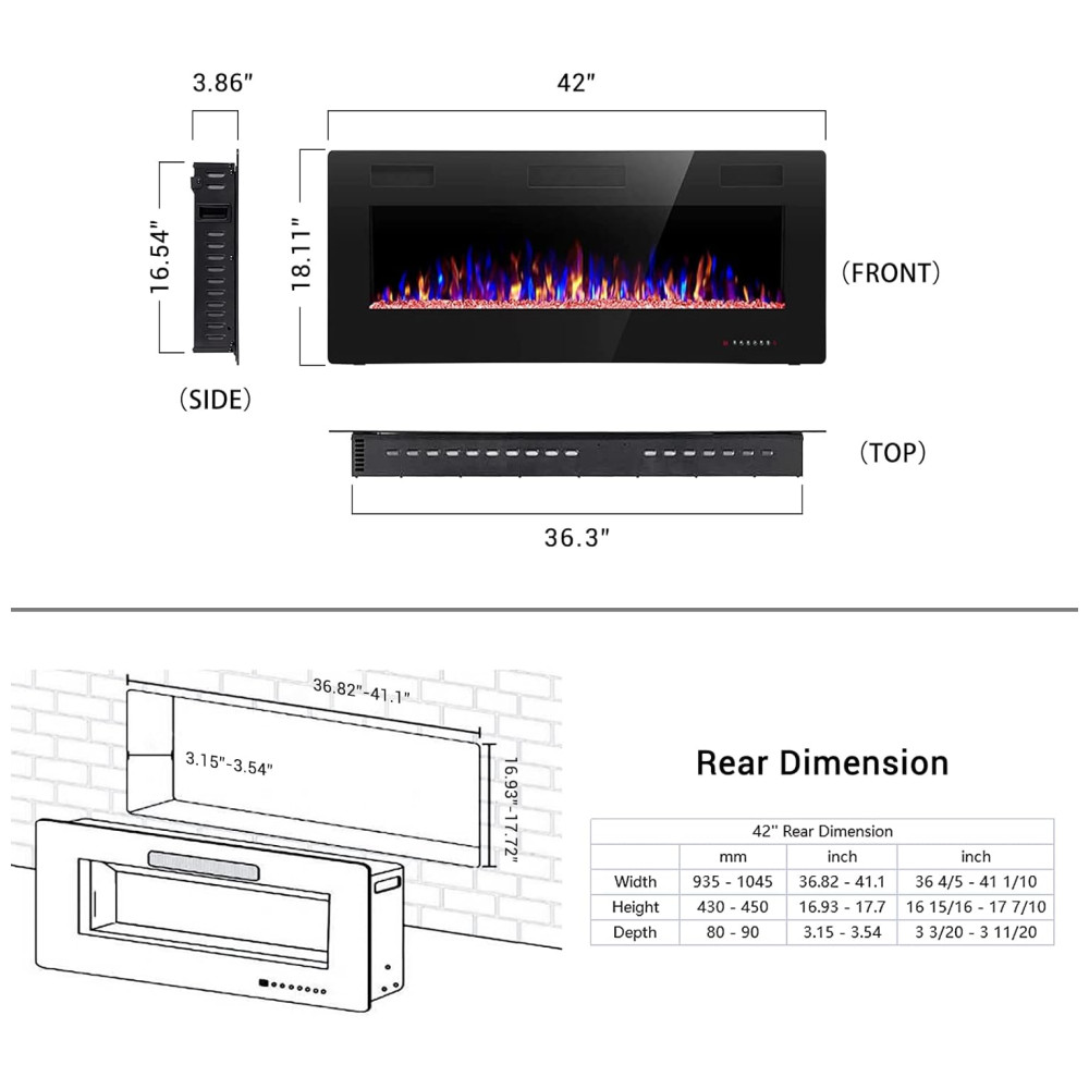 A lareira elétrica de parede também é fácil de operar com controle remoto e tela sensível ao toque de LED, visor digital claro, controle de temporizador de 1 a 8 horas, interruptor independente de aquecimento e chama.