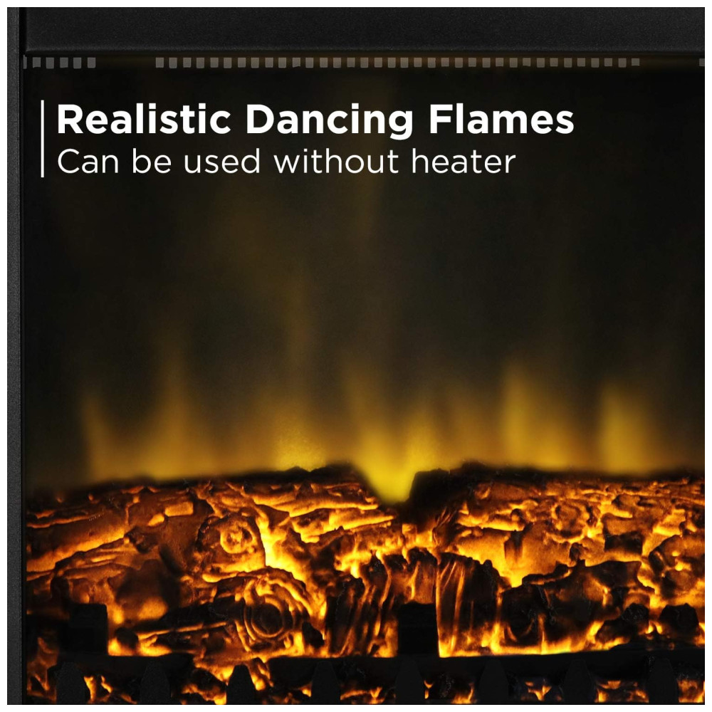 O efeito de chama pode ser ligado separadamente do aquecimento para ajudar a definir o clima quando o aquecedor não for necessário.