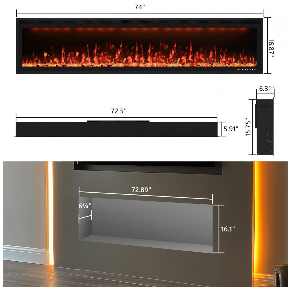 Nome do Modelo: Lareira Elétrica 74 Polegadas,
