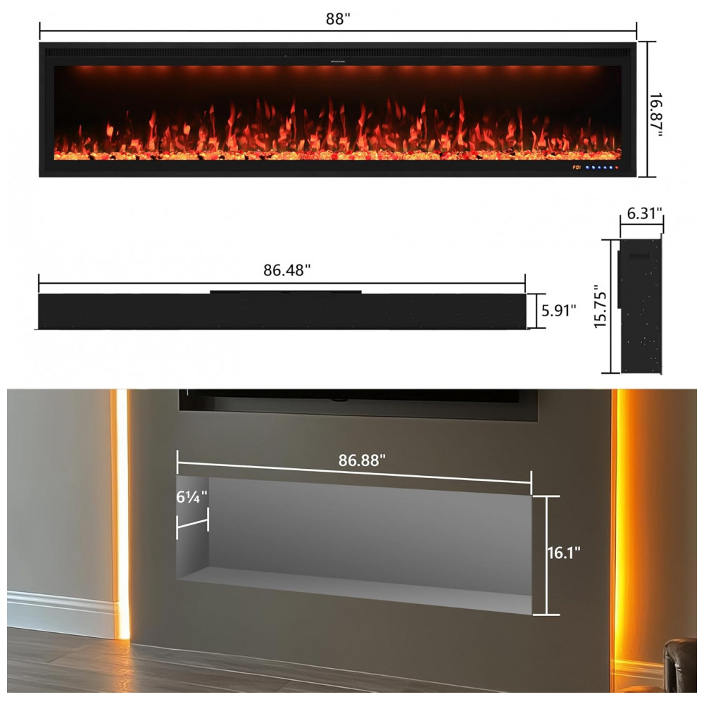 Lareira Elétrica Valuxhome Visão com Tela de 223,52 cm, Aplicativo, Montagem na Parede e Embutida, Aquecedor Elétrico Moderno para Sala de Estar,